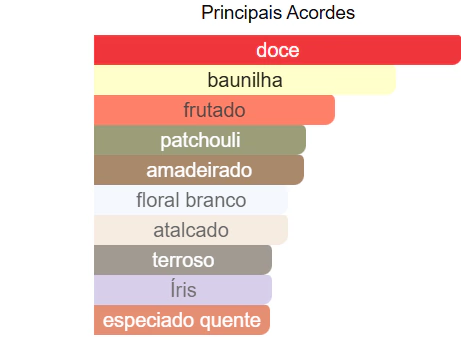 Notas de Fundo: Patchouli, Fava Tonka, Baunilha e Pralinê.