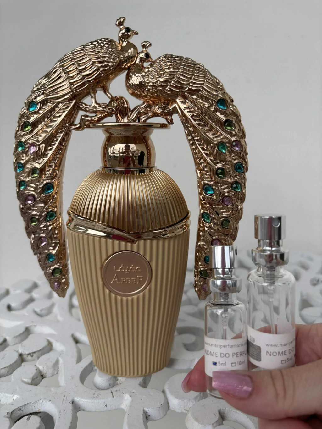 Afeef de Lattafa Perfumes é um perfume Feminino. Esta é uma nova fragrância. Afeef foi lançada em 2024. As notas de topo são: Pêssego, Pimenta Rosa e Bergamota. As notas de coração são: Tuberosa, Flor de Laranjeira e Jasmim. As notas de fundo são: Pralinê, Sândalo, Âmbar e Patchouli.