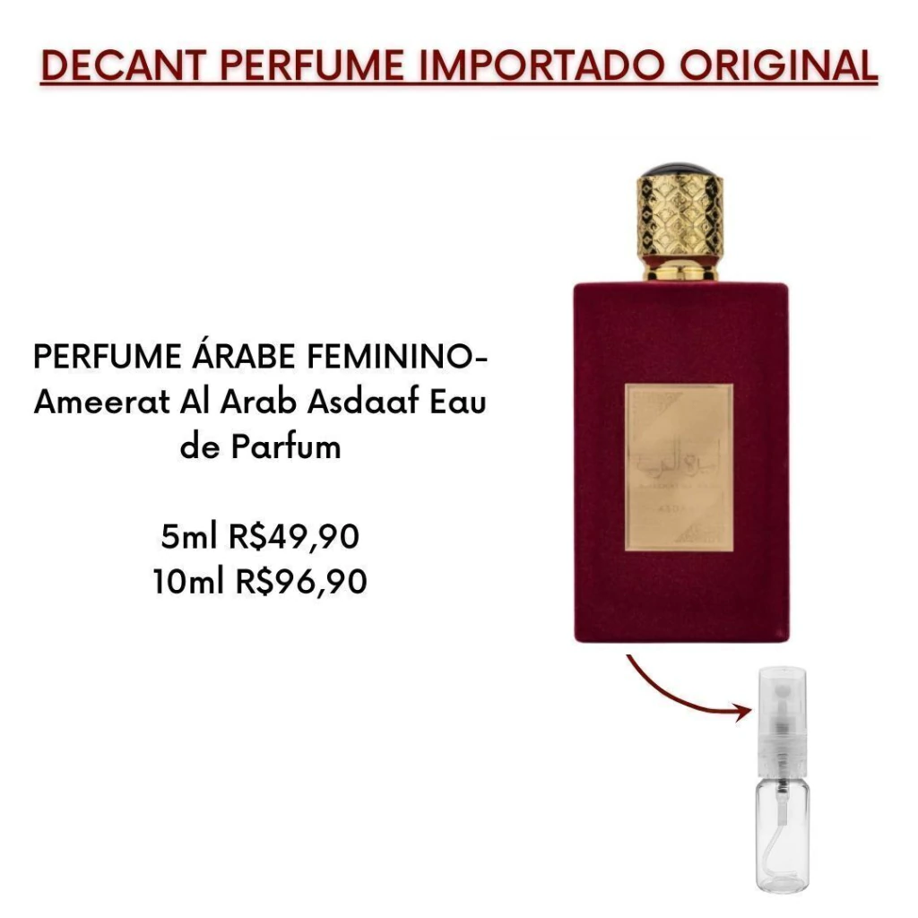 DECANTS SÃO PERFUMES ORIGINAIS FRACIONADOS EM FRASCOS MENORES DE 5ML (rende apox. 60 borrifadas) OU 10ML (aprox. 120 borrifadas) , PARA QUE VOCÊ POSSA SENTIR A FRAGRÂNCIA EM SUA PELE ANTES DE COMPRAR O FRASCO GRANDE DO SEU IMPORTADO PREFERIDO.