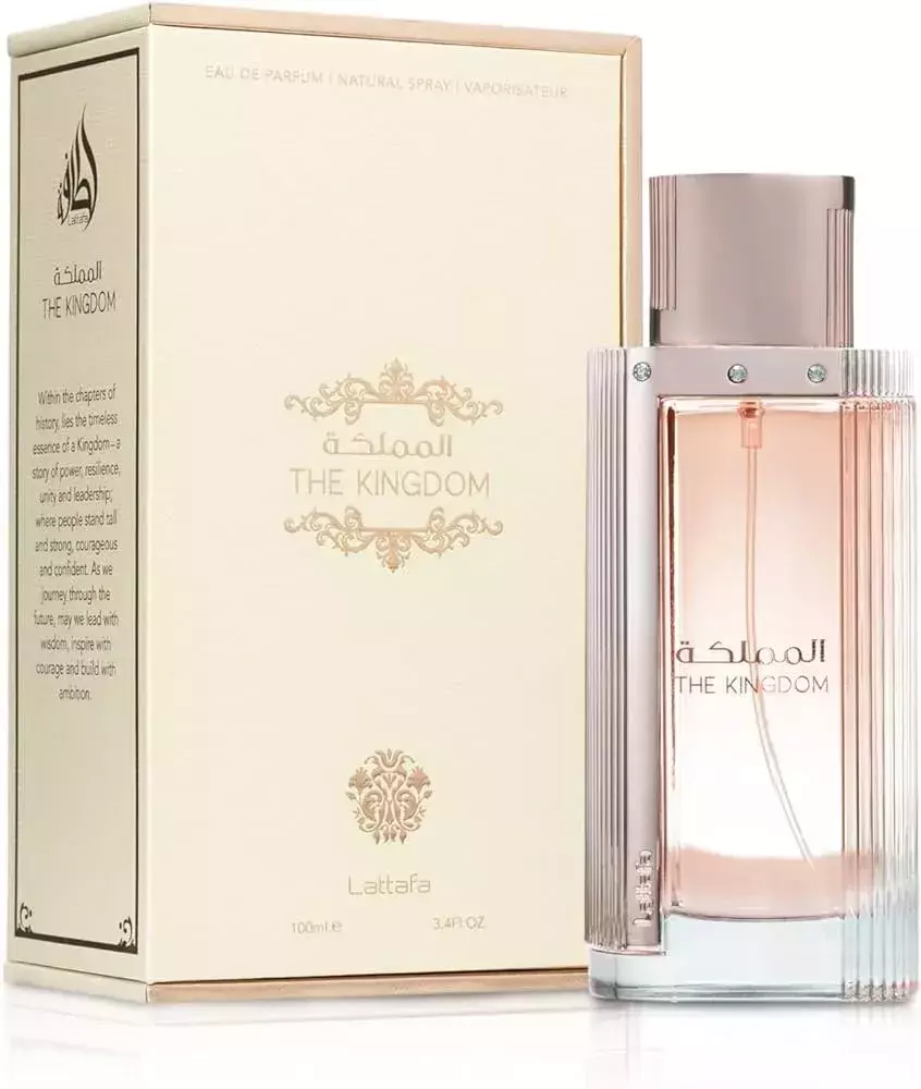 The Kingdom de Lattafa Perfumes é um perfume Floral Frutado Gourmet Feminino. Esta é uma nova fragrância. The Kingdom foi lançada em 2024. As notas de topo são: Pera, Cassis e Peônia. As notas de coração são: Pralinê, Fava Tonka e Jasmim. As notas de fundo são: Almíscar, Baunilha, Sândalo e Âmbar.