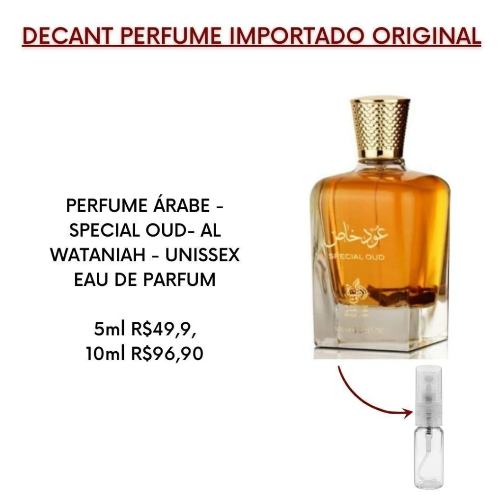 Special Oud de Al Wataniah é um perfume Compartilhável. As notas de topo são: Couro, Açafrão, Pêssego, Caramelo e Bagas Vermelhas. As notas de coração são: Notas Amadeiradas, Nagarmota ou Óleo de Cipriol, Pimenta Rosa, Ládano e Gengibre. As notas de fundo são: Agarwood (Oud), Baunilha, Patchouli, Almíscar, Benjoim e Bálsamo do Peru.