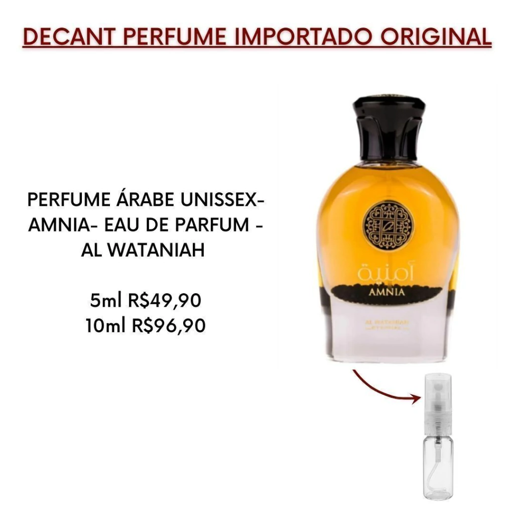 Amnia de Al Wataniah é um perfume Amadeirado Compartilhável. Amnia foi lançada em 2022. As notas de topo são: Amêndoa e Pimenta Rosa. As notas de coração são: Flor de Laranjeira e Tuberosa. As notas de fundo são: Fava Tonka, Baunilha e Patchouli.