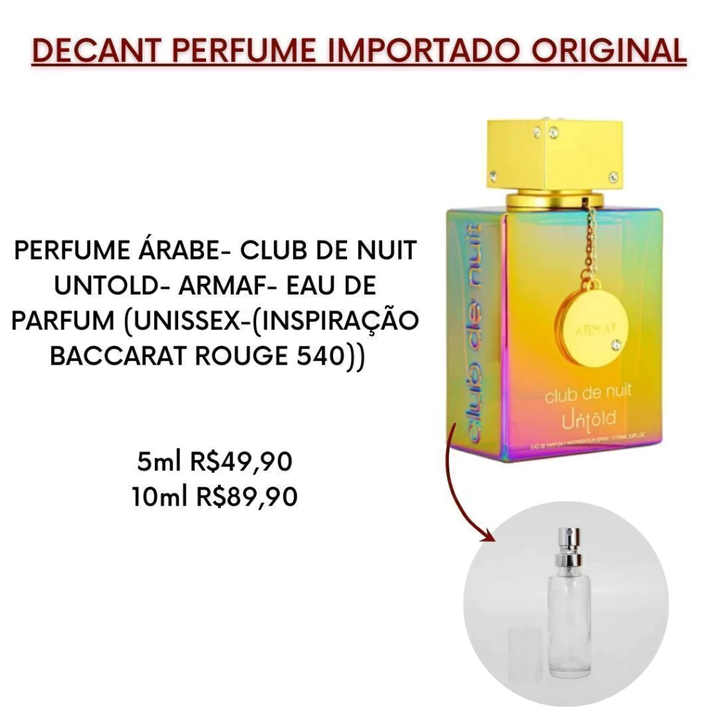 DECANTS SÃO PERFUMES ORIGINAIS FRACIONADOS EM FRASCOS MENORES DE 5ML (rende apox. 60 borrifadas) OU 10ML (aprox. 120 borrifadas) , PARA QUE VOCÊ POSSA SENTIR A FRAGRÂNCIA EM SUA PELE ANTES DE COMPRAR O FRASCO GRANDE DO SEU IMPORTADO PREFERIDO.