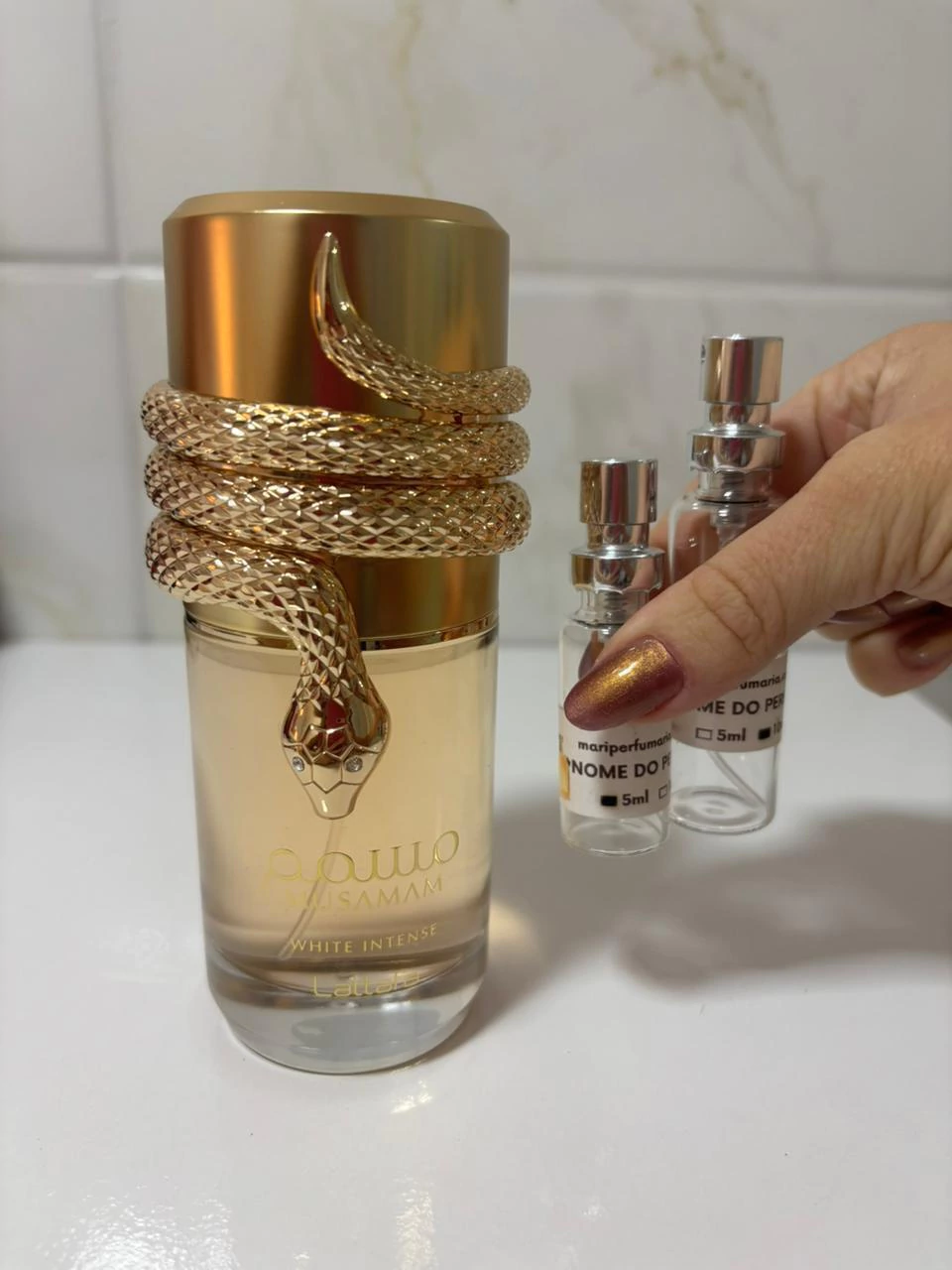 Musamam White Intense de Lattafa Perfumes é um perfume Compartilhável. Esta é uma nova fragrância. Musamam White Intense foi lançada em 2023. As notas de topo são: Bergamota, Laranja e Especiarias. As notas de coração são: Coco, Ylang Ylang, Ambroxan e Mahonial®. As notas de fundo são: Sândalo, Almíscar e Benjoim.