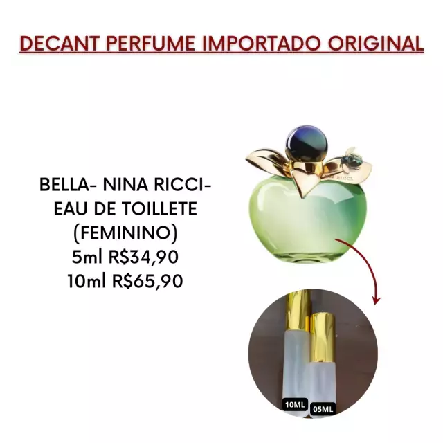 Descrição: O Perfume Bella Feminino Nina Ricci Eau de Toilette aposta em um tom atraente, sexy e cheio de personalidade. Sob fundo floral frutado, a essência conta com notas em Tangerina Verde, Rosa e Baunilha.