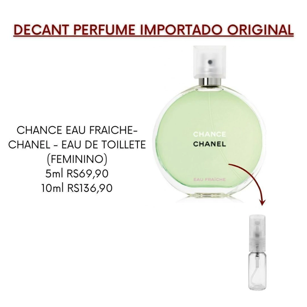Chance Eau Fraiche de Chanel é um perfume Chipre Floral Feminino. Chance Eau Fraiche foi lançada em 2007. O perfumista que assina esta fragrância é Jacques Polge. As notas de topo são: Limão, Cedro e Cidra. As notas de coração são: Jacinto d'água, Pimenta Rosa e Jasmim. As notas de fundo são: Patchouli, Almíscar Branco, Vetiver, Madeira de Teca, Íris e Âmbar.