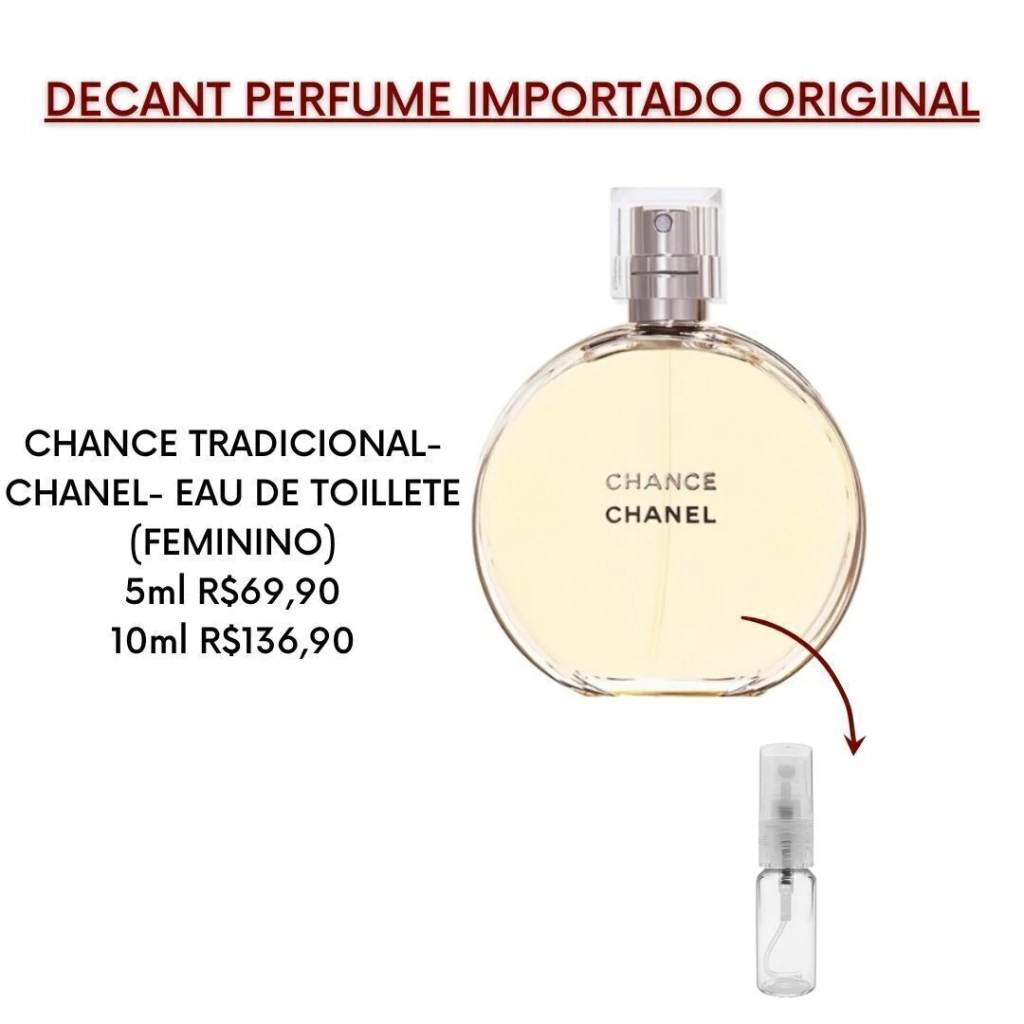 DECANTS SÃO PERFUMES ORIGINAIS FRACIONADOS EM FRASCOS MENORES DE 5ML (rende apox. 60 borrifadas) OU 10ML (aprox. 120 borrifadas) , PARA QUE VOCÊ POSSA SENTIR A FRAGRÂNCIA EM SUA PELE ANTES DE COMPRAR O FRASCO GRANDE DO SEU IMPORTADO PREFERIDO.