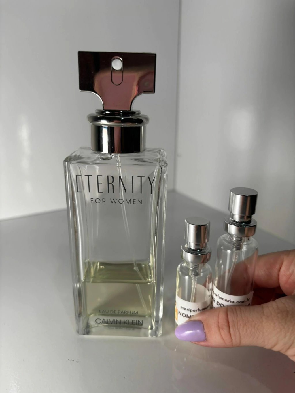 Eternity de Calvin Klein é um perfume Floral Feminino. Eternity foi lançada em 1988. O perfumista que assina esta fragrância é Sophia Grojsman. As notas de topo são: Notas Verdes, Frésia, Sálvia, Cítricos e Mandarina. As notas de coração são: Cravo, Lírio, Lírio-do-Vale, Narciso, Cravo-de-Defunto, Violeta, Rosa e Jasmim. As notas de fundo são: Almíscar, Heliotrópio, Sândalo, Âmbar e Patchouli.