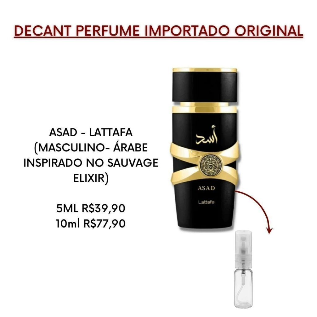 DECANTS SÃO PERFUMES ORIGINAIS FRACIONADOS EM FRASCOS MENORES DE 5ML (rende apox. 60 borrifadas) OU 10ML (aprox. 120 borrifadas) , PARA QUE VOCÊ POSSA SENTIR A FRAGRÂNCIA EM SUA PELE ANTES DE COMPRAR O FRASCO GRANDE DO SEU IMPORTADO PREFERIDO.