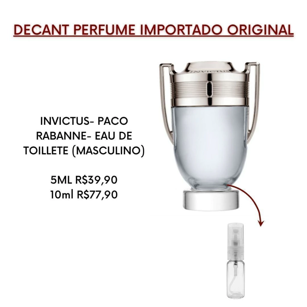 Invictus de Paco Rabanne é um perfume Aquático Amadeirado Masculino. Invictus foi lançada em 2013. Invictus foi criado por Veronique Nyberg, Anne Flipo, Olivier Polge e Dominique Ropion. As notas de topo são: Notas Oceânicas, Toranja e Mandarina. As notas de coração são: Folha de Louro e Jasmim. As notas de fundo são: Âmbar Cinzento, Madeira Guaiac, Musgo de Carvalho e Patchouli.