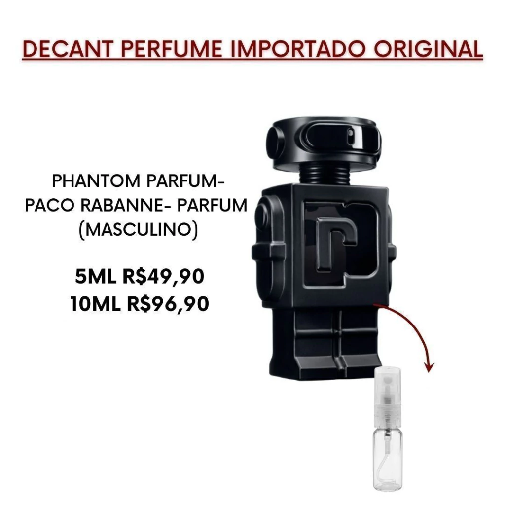 DECANTS SÃO PERFUMES ORIGINAIS FRACIONADOS EM FRASCOS MENORES DE 5ML (rende apox. 60 borrifadas) OU 10ML (aprox. 120 borrifadas) , PARA QUE VOCÊ POSSA SENTIR A FRAGRÂNCIA EM SUA PELE ANTES DE COMPRAR O FRASCO GRANDE DO SEU IMPORTADO PREFERIDO.