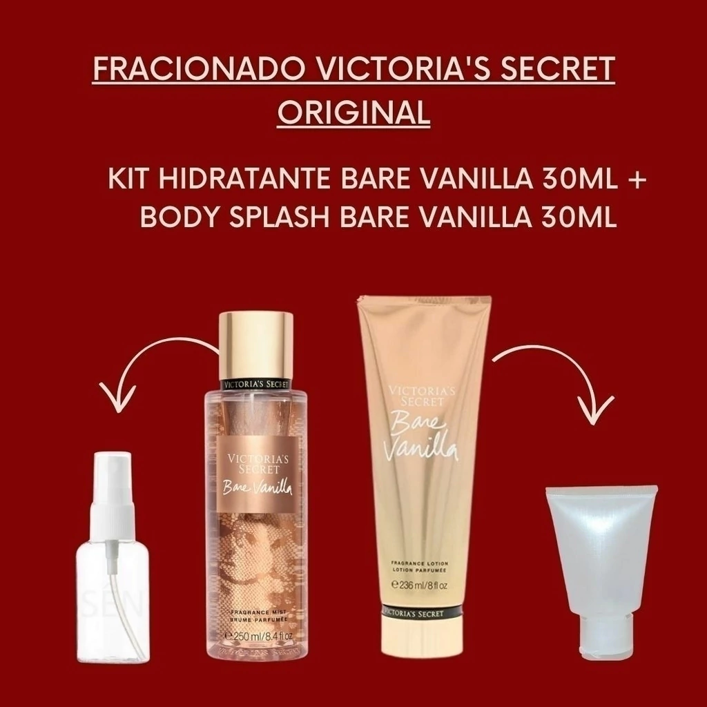 Kit contém: Bare vanila body splash SEM BRILHO 30ml + hidratante Bare Vanilla 30ml