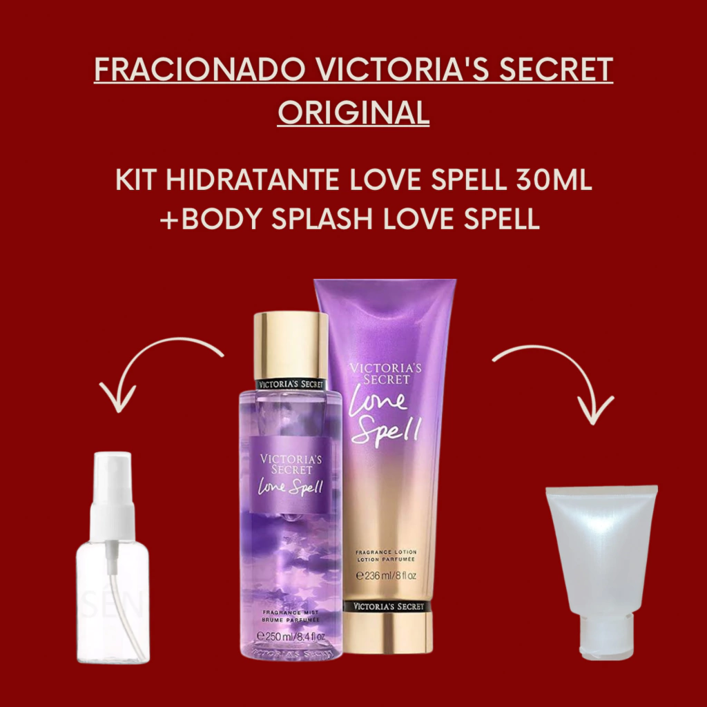 o kit contém 30ml hidratante Victoria's Secret Love Spell + 30ml Body Splash Love Spell