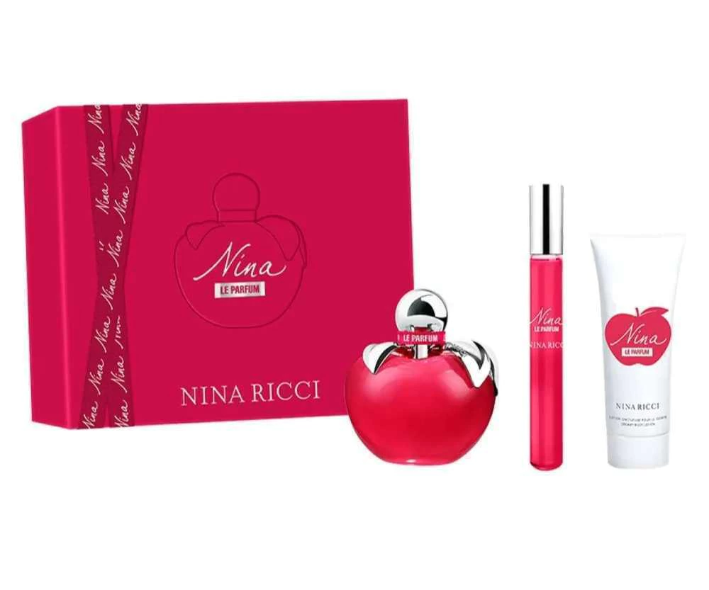 O Kit Contém: 1 Perfume Nina Ricci Nina Feminino Le parfum 80 ml; 1 Creme corporal Nina Ricci Nina Feminino Le Parfum 75 ml; 1 Perfume Rool-on Nina Ricci Nina Feminino Le Parfum 10 ml.