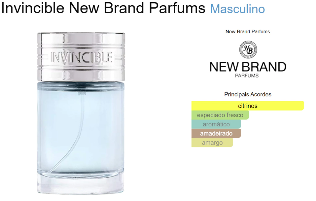Invincible de New Brand Parfums é um perfume Cítrico Aromático Masculino.