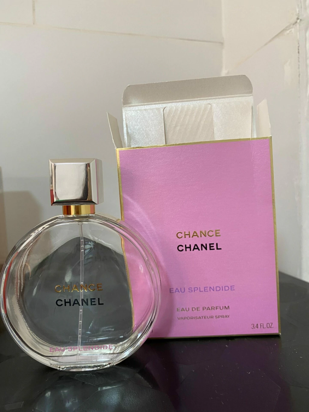 Chance Eau Splendide de Chanel é um perfume Floral Frutado Feminino. Esta é uma nova fragrância. Chance Eau Splendide foi lançada em 2025. O perfumista que assina esta fragrância é Olivier Polge. As notas de topo são: Frutas Vermelhas, Framboesa, Rosa, Violeta e Pêssego. As notas de coração são: Gerânio Rosa e Íris. As notas de fundo são: Almíscar Branco e Cedro.