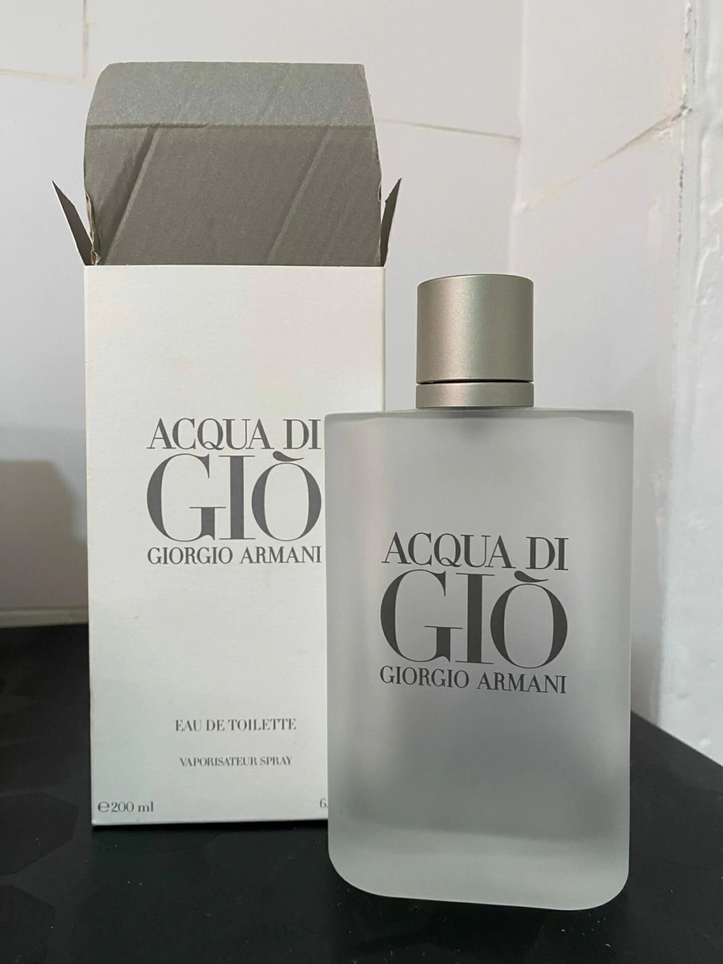 Acqua di Gio de Giorgio Armani é um perfume Aromático Aquático Masculino. Acqua di Gio foi lançada em 1996. Acqua di Gio foi criado por Alberto Morillas, Annick Menardo e Christian Dussoulier. As notas de topo são: Lima, Limão, Bergamota, Jasmim, Laranja, Mandarina e Néroli. As notas de coração são: Notas Oceânicas, Jasmim, Calone, Alecrim, Pêssego, Frésia, Jacinto, Cyclamen, Violeta, Coentro, Rosa, Noz-moscada e Resedá. As notas de fundo são: Almíscar Branco, Cedro, Musgo de Carvalho, Patchouli e Âmbar.