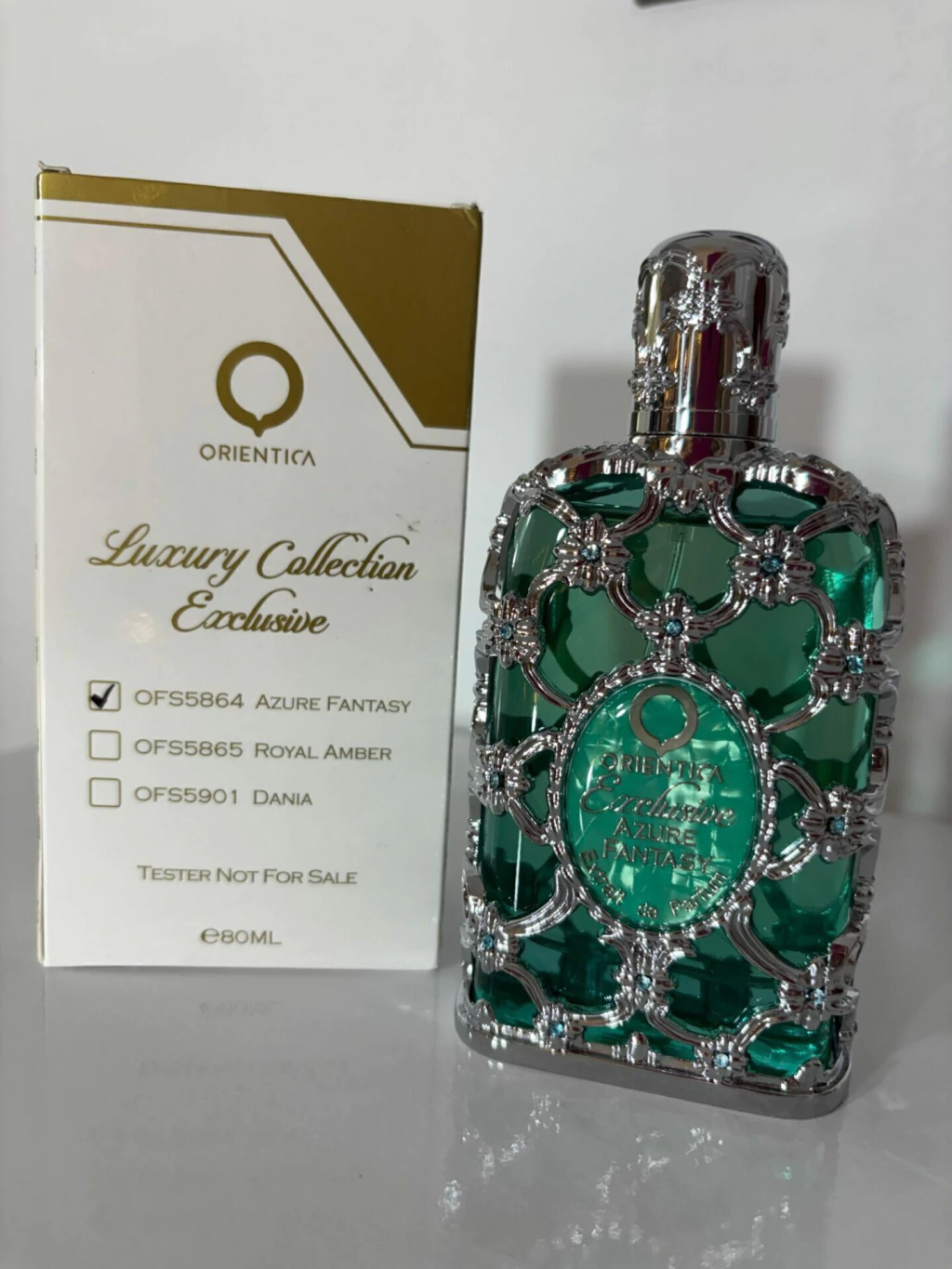 Exclusive Azure Fantasy de Orientica Premium é um perfume Compartilhável. Esta é uma nova fragrância. Exclusive Azure Fantasy foi lançada em 2024. As notas de topo são: Bergamota, Gengibre, Hortelã e Noz-moscada. As notas de coração são: Jasmim, Gerânio e Lírio-do-Vale. As notas de fundo são: Almíscar, Âmbar Cinzento e Madeira Guaiac.